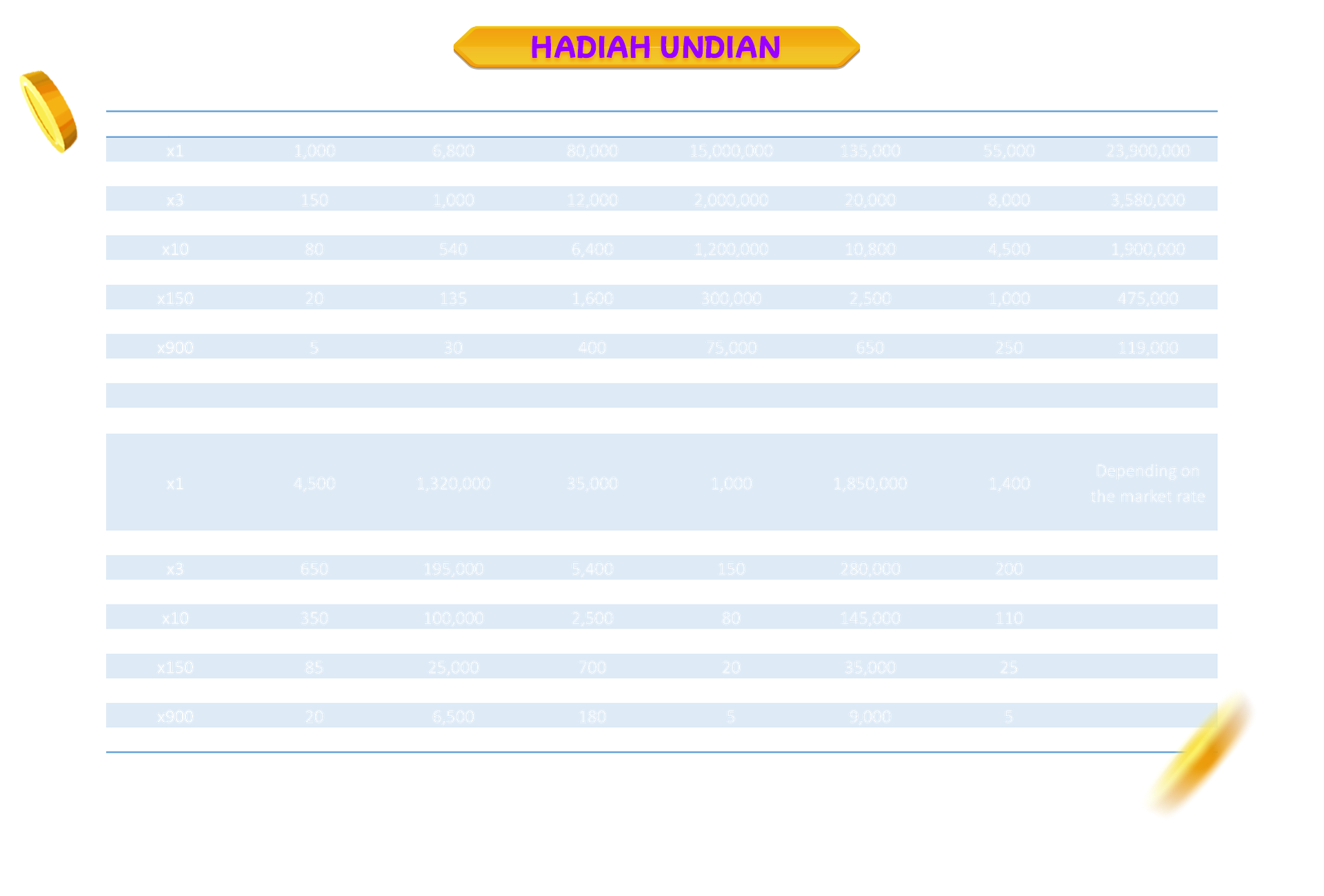 9. Ada 13.000 hadiah dengan total 1,513,000,000 IDR yang akan diberikan setiap minggu dalam beberapa tahapan selama periode promosi.