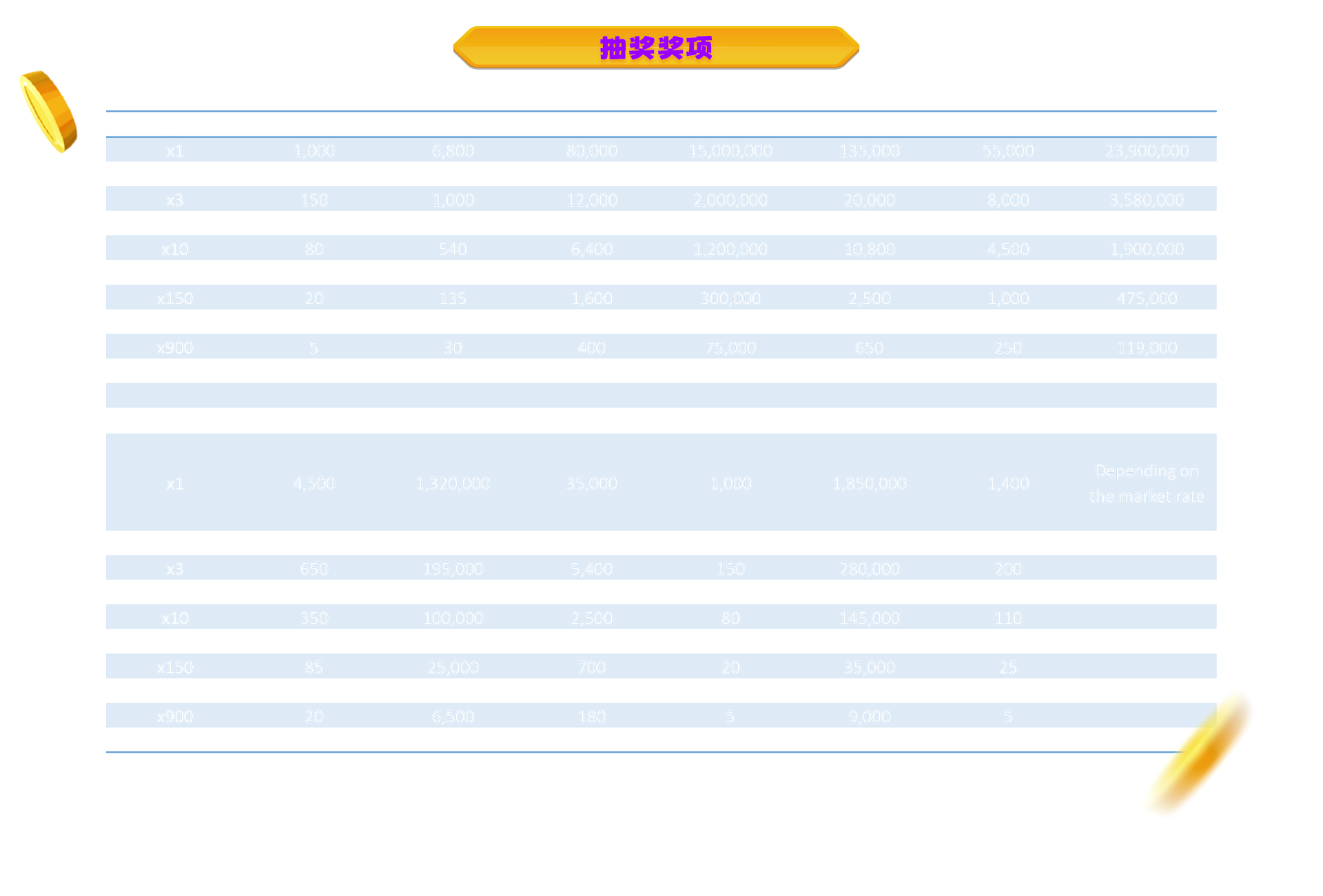 7. 此次活动支持使用下列币种的玩家:美元、欧元、日元、人民币、泰铢、越南盾、印度尼西亚盾、印度卢比、韩元、缅甸元、林吉特、港元,新加坡元和系统支援的虚拟货币。