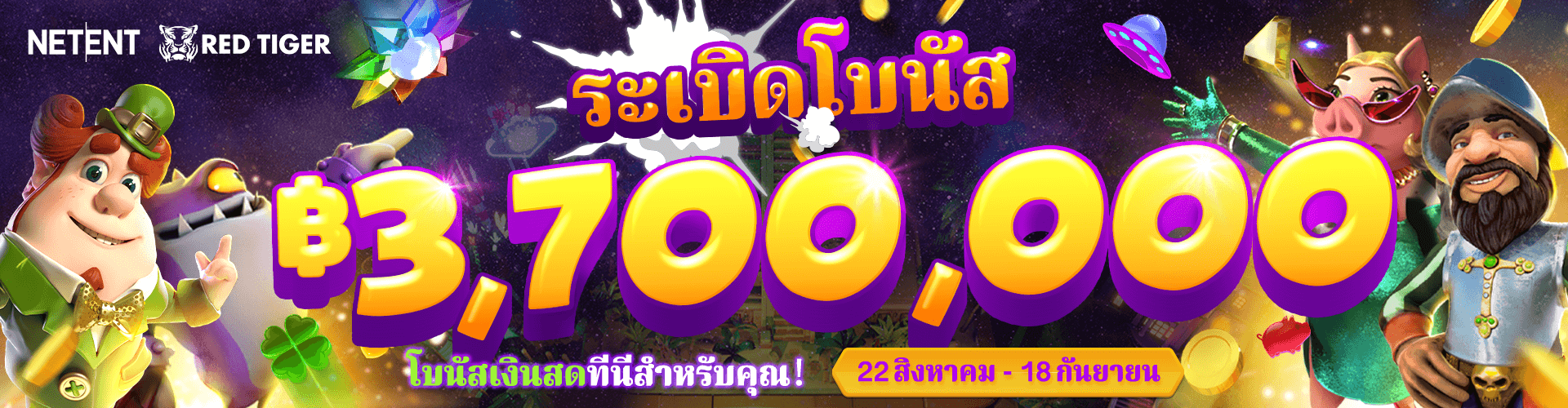 ผู้เล่นที่เดิมพันในเกม NetEnt หรือ Red Tiger ในช่วง 29 ส.ค. ~ 04 ก.ย. และ 12 ก.ย. ~ 18 ก.ย. เราจะส่งรางวัลทั้งหมด 4,000 รางวัล และจำนวนรางวัลจะขึ้นอยู่กับข้อมูลรางวัลการดรอปเงินสด